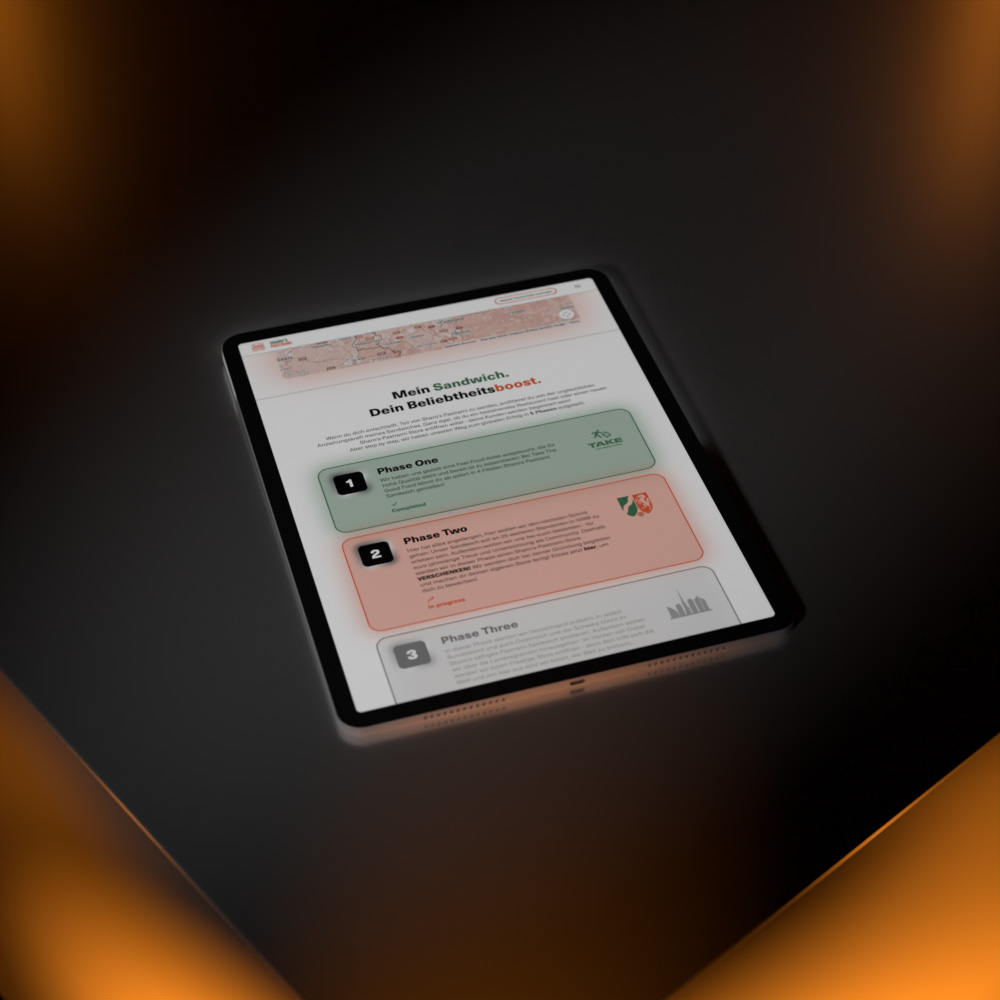 Dafür entwickelten wir detailreiche 3D-Modelle der Sandwiches und inszenierten sie in animierten Szenen, die das Produkt dynamisch und appetitlich präsentieren. Ergänzend entstand authentischer Video-Content, während ein durchdachtes UX-Design die handwerkliche Qualität der Marke auch digital spürbar macht.